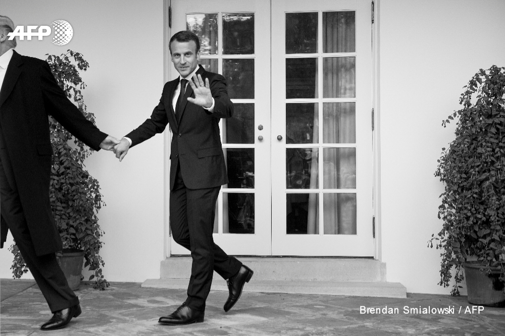 Brendan Smialowski reçoit la 3ème place de la catégorie « General News Singles » pour une photo de Donald Trump prenant Emmanuel Macron par la main à l'occasion de la visite officielle du président français à la Maison Blanche en avril 2018.