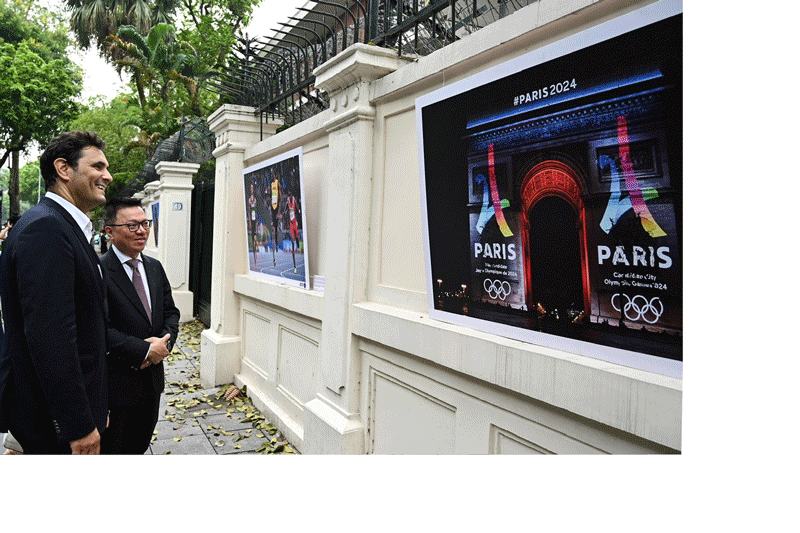 Les murs de l’ambassade de France au Vietnam accueillent l’exposition « En route pour 2024 », qui regroupe 24 photos de l’AFP célébrant les Jeux et les valeurs olympiques.